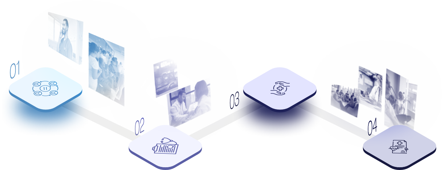 IA aplicada como suporte à decisão clínica, apoiando médicos experientes e qualificados na definição e validação de Planos de Cuidado, na identificação de riscos e no acompanhamento da evolução de condições crônicas.